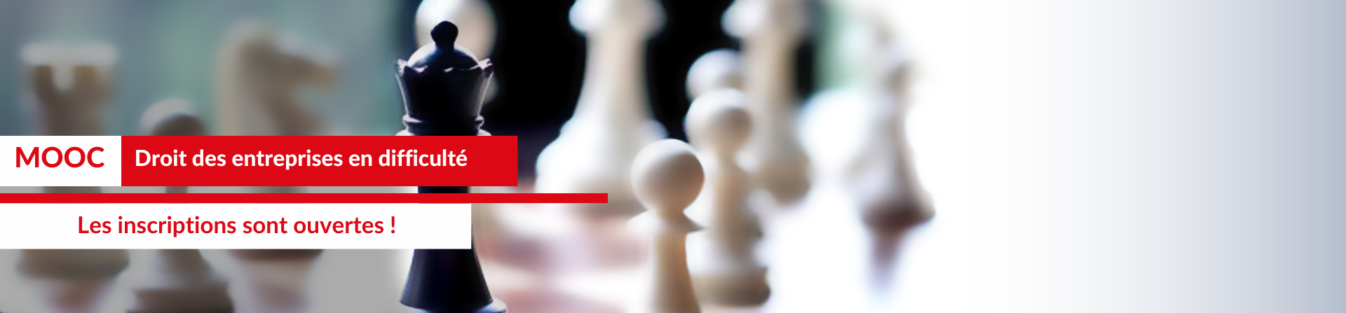 Le mooc (cours en ligne gratuit et ouvert à tous) "Droit des entreprises en difficulté" réalisé par notre université commencera le 30 janvier 2023. Les inscriptions sont déjà ouvertes sur la plateforme FUN-Mooc !