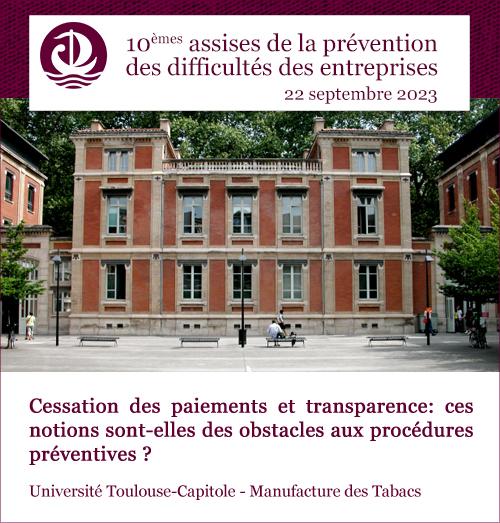 Se tiendront, le 22 septembre 2023, à l’Université Toulouse Capitole, les 10èmes Assises de la Prévention des difficultés des entreprises, organisées par l’association Droit et Commerce et le Master RIED (Retournement et Insolvabilité des Entreprises en Difficulté). Ce partenariat permet de réunir d’éminents praticiens des procédures préventives (avocats, administrateurs judiciaires, magistrats) ainsi que des membres du Ministère de la Justice et de la Commission européenne.