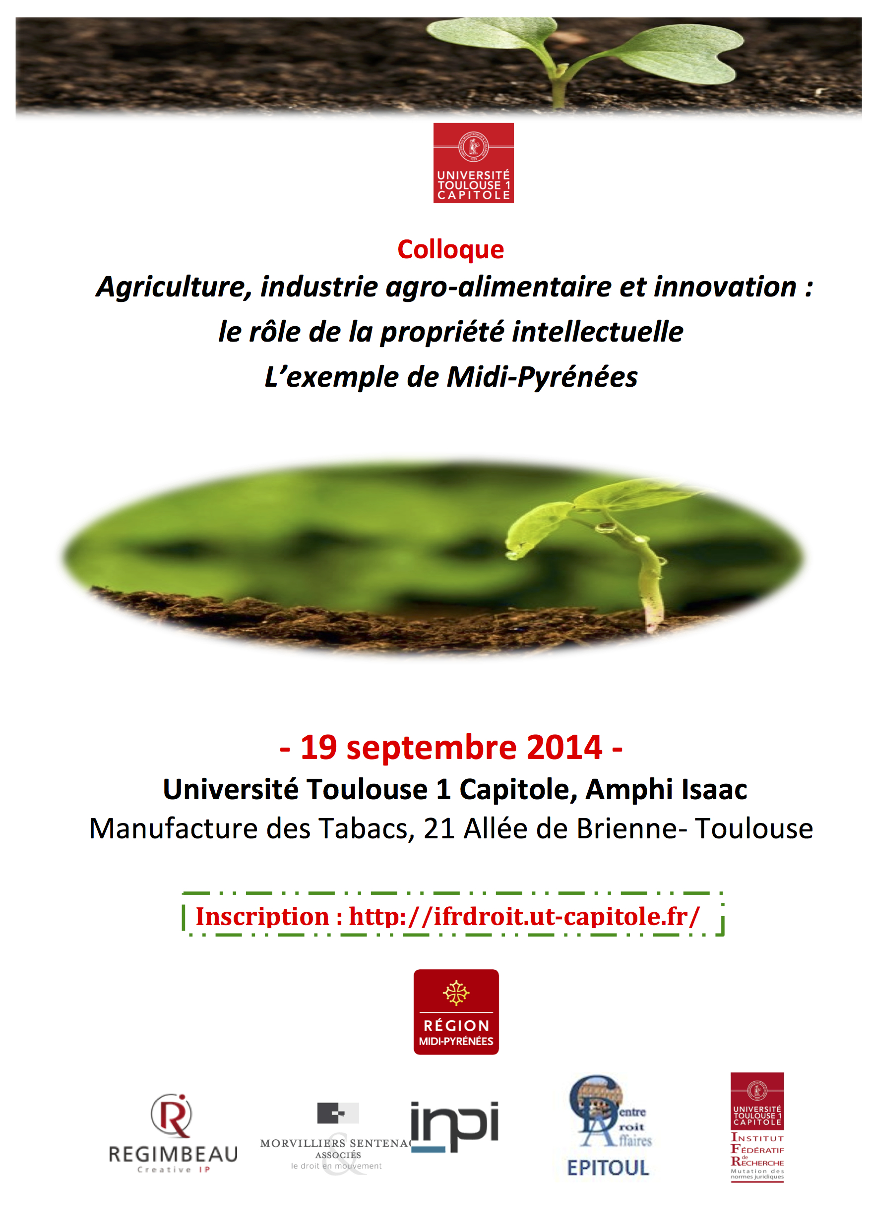 "Agriculture, industrie agro-alimentaire et innovation : le rôle de la propriété intellectuelle. L'exemple de Midi-Pyrénées" colloque CDA-EPITOUL