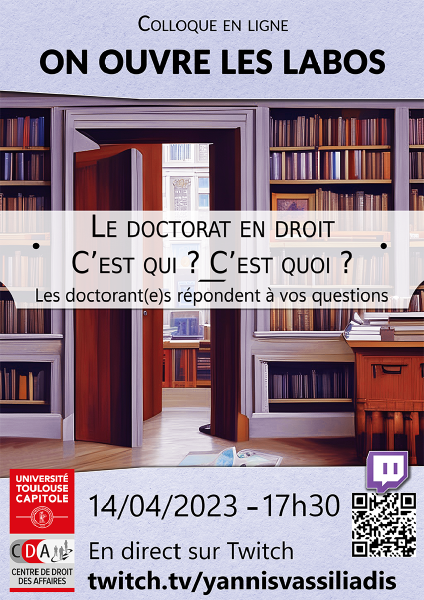 Colloque en ligne sur Twitch : "Le doctorat en Droit. C'est qui ? C'est quoi ?"