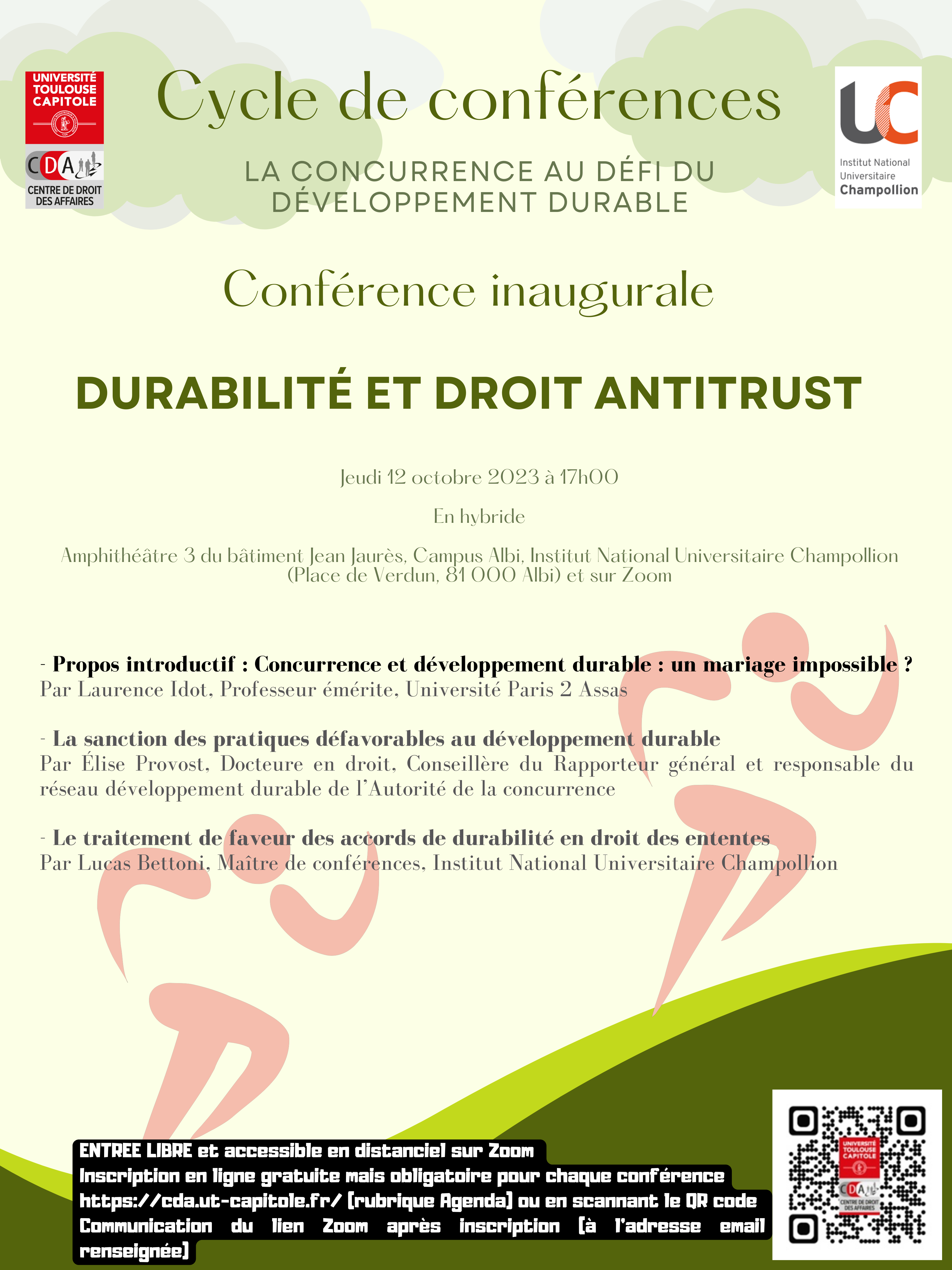 - conférence n°1 : Durabilité et droit antitrust, 12 octobre 17h