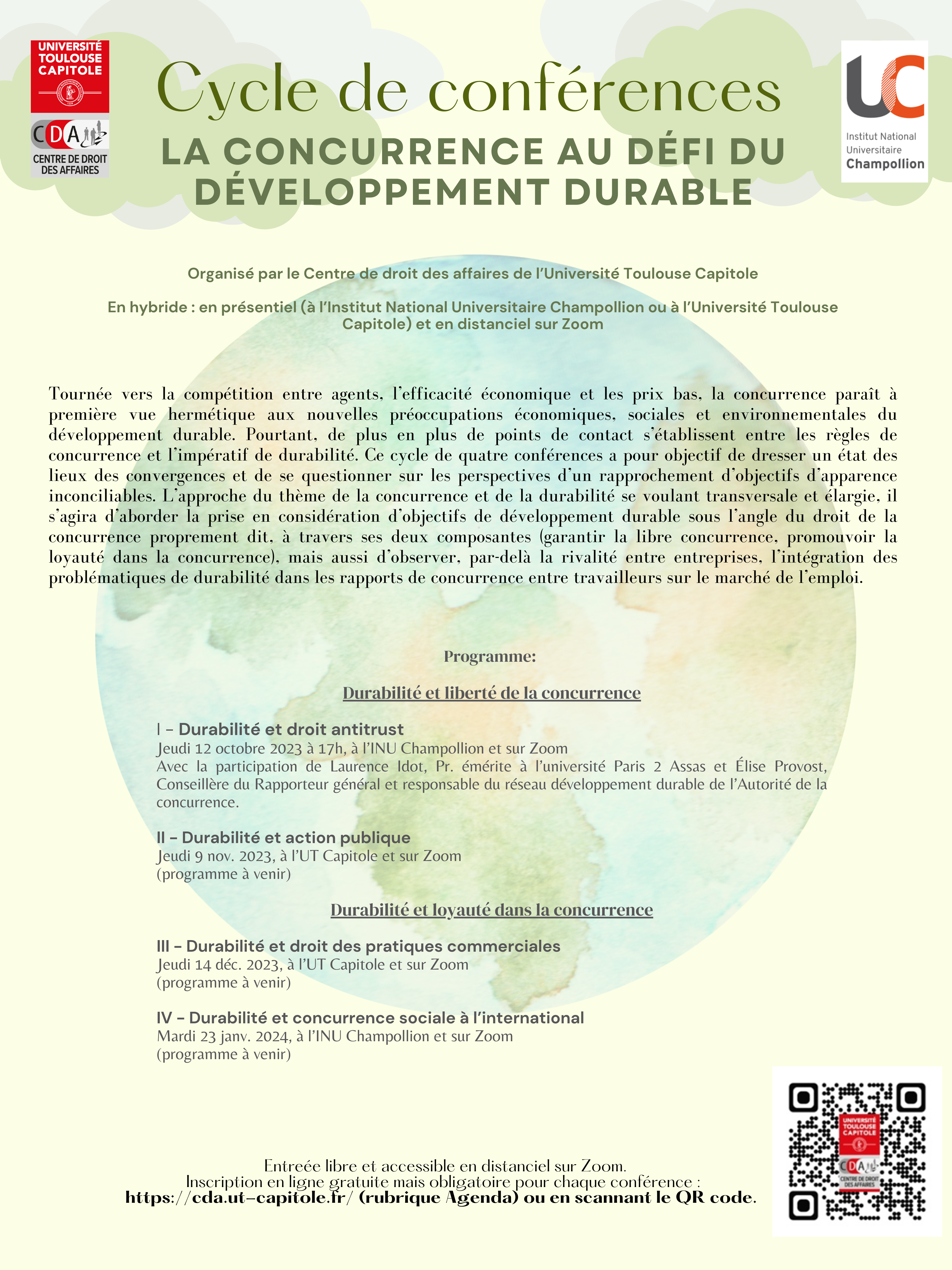 "Cycle de conférences : La Concurrence au défi du Développement Durable" - Centre de Droit des Affaires (CDA)