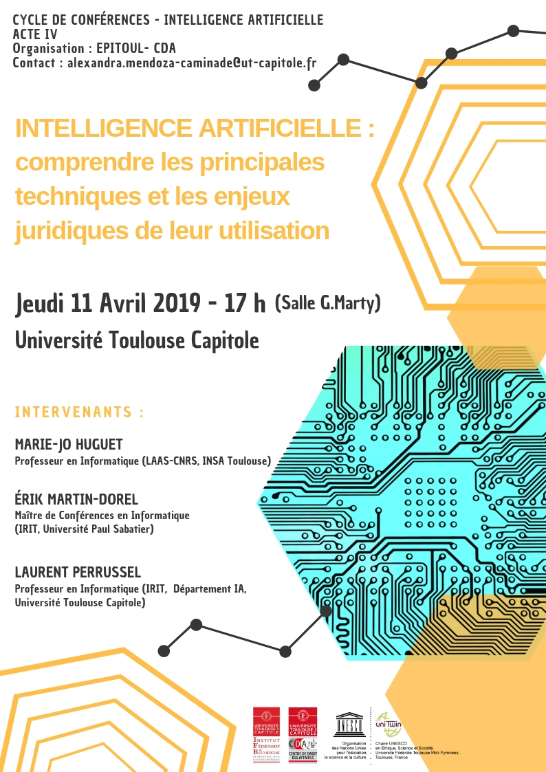 4e conférence du cycle cycle « Réflexions autour de l’intelligence artificielle » organisé depuis le mois d’octobre 2018 par l’équipe EPITOUL du Centre de droit des affaires.