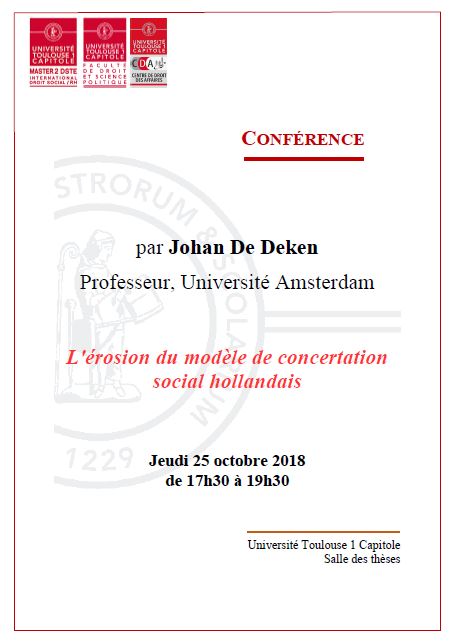 "l'érosion du modèle de concertation social hollandais", Conférence par Johan De Deken, professeur à l'Université d'Amsterdam