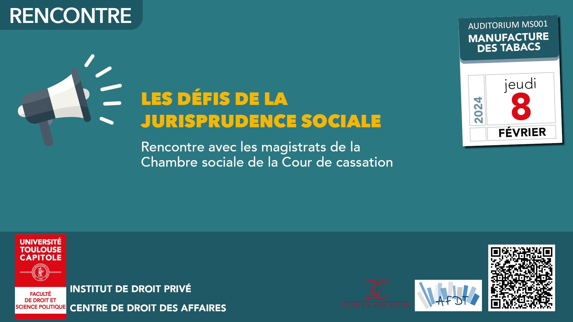 Trois magistrats de la Cour de cassation, M. Jean-Michel Sommer, président de la chambre sociale, Christine Capitaine, et Sabine Mariette, conseillères-doyens à la chambre sociale de la Cour de cassation, viendront présenter au cours de cette journée leurs réflexions sur ces évolutions, dans un dialogue avec les universitaires, les étudiants des Masters de droit social et les avocats et magistrats toulousains.