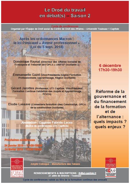 "Réforme de la gouvernance et du financement de la formation et de l'alternance: quels impacts? quels enjeux?", Conférence du CDA - équipe Droit social